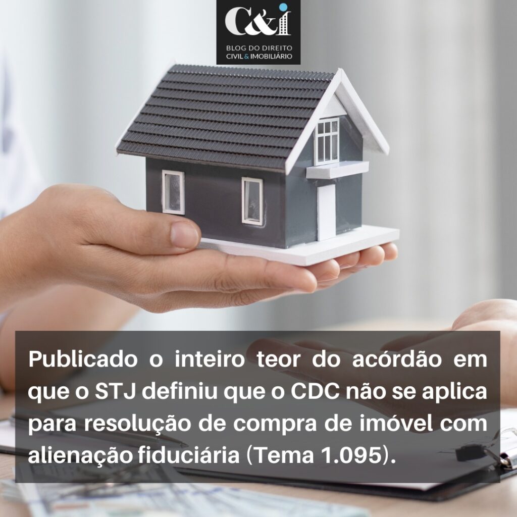“Em contrato de compra e venda de imóvel com garantia de alienação fiduciária devidamente registrado em cartório, a resolução do pacto, na hipótese de inadimplemento do devedor, devidamente constituído em mora, deverá observar a forma prevista na Lei nº 9.514/97, por se tratar de legislação específica, afastando-se, por conseguinte, a aplicação do Código de Defesa do Consumidor.”